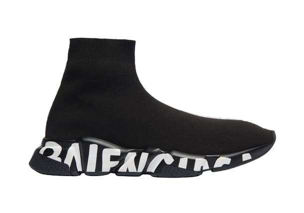 Balenciaga Speed Graffiti Trainers Black White Logo (W).